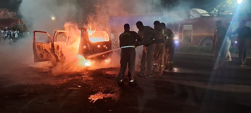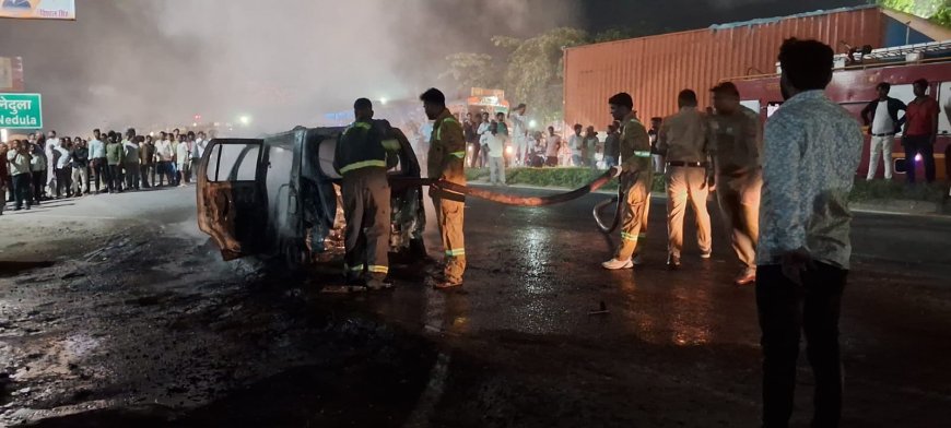 कार में लगी आग जलकर खाक नेदूला में हुई बड़ी घटना