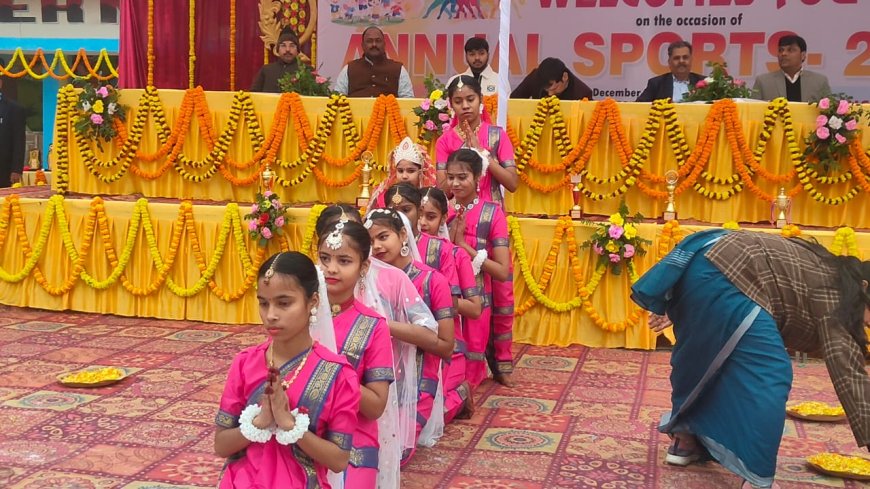 स्कूल की छात्राओं ने स्वागत गान, पंजाबी नृत्य के साथ ही क्रिकेट विश्व विजेता महिला टीम का प्रतिबिंब प्रस्तुत करके मौजूद लोगों को मंत्रमुग्ध कर दिया। अपने संबोधन में मुख्य अतिथि सीएमओ डा. रामानुज कन्नौजिया ने कहा कि बच्चों के सर्वांगीण विकास के लिए आउट डोर गेम बेहद आवश्यक है। उन्होंने छात्र छात्राओं को उनके शारीरिक और बौद्धिक विकास के लिए खेल को महत्वपूर्ण बताया। डा कन्नौजिया ने संस्थान के नौनिहालों के अनुशासन और उनके लिए शानदार प्लेटफार्म उपलब्ध कराने के लिए प्रबंध तंत्र की सराहना किया। उन्होंने संस्थान के नौनिहालों की निपुणता और उनमें झलक रहे बेहतर संस्कार के लिए स्कूल के टीचर्स की प्रसंशा किया।